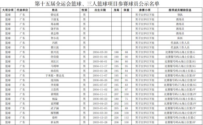 中国篮球协会今天公示第十五届全国运动会篮球项目决赛阶段球员名单,崔永熙、徐昕将代表广东队参加22岁以下组比赛。